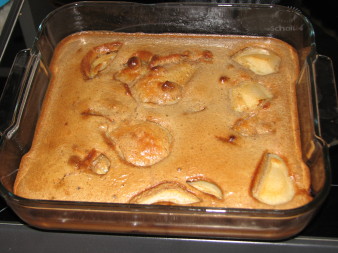 Je voulais faire encore une tarte, mais je me suis retrouvée à court de pâte à tarte et de farine... J'ai donc fait une tarte sans pâte, c'est pas mal non plus.